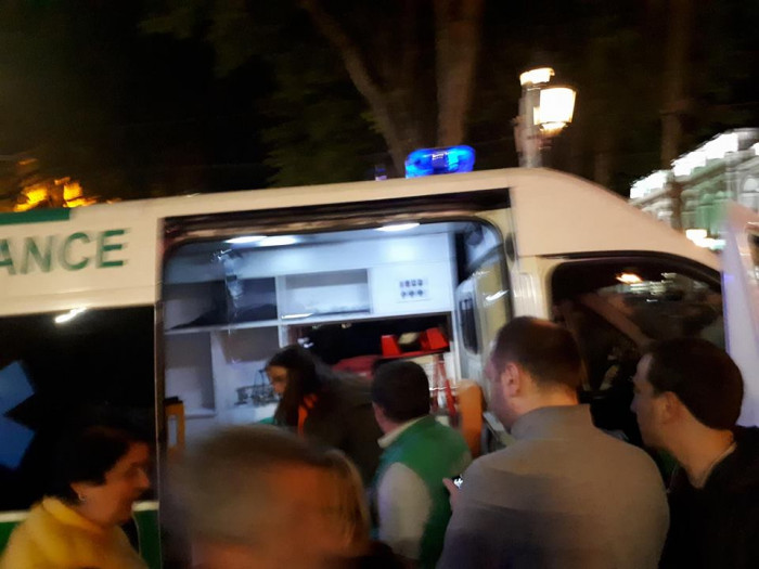 როგორც "პრაიმტაიმის" ჟურნალისტი რუსთაველის მიმდებარე ტერიტორიიდან იუწყება, კონტრაქციის წევრების დაპირისპირების დროს საზოგადოებრივი მაუწყებლის ოპერატორი დაშავდა. იგი სასწრაფო დახმარების მანქანამ ალადაშვილის კლინიკაში გადაიყვანა. პირველადი ინფორმაციით, ოპერატორს ხელი აქვს ამოვარდნილი.